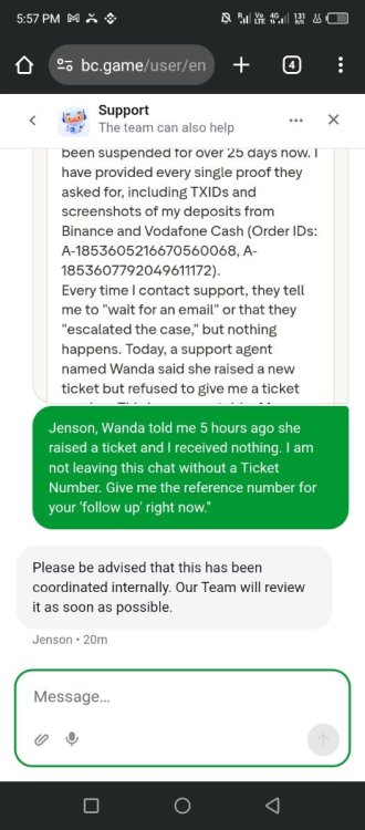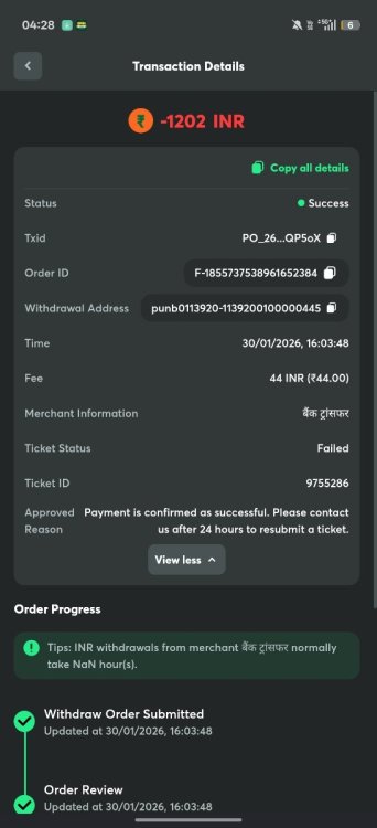 Username : Royal2809 User id:71653609 Registered Email: [email protected] Issue Type: Deposit credited 0 INR but amount deducted Order ID: F-1855643118549083079 Transaction ID (Txid): P_260...7nEAE Order Amount: 5000 INR Credited Amount: 0 INR Status: Processing (from long time) Date & Time: 29/01/2026 at 03:03:02 PM Problem Description: I made a deposit of 5000 INR on BC.Game. The order status is still showing “Processing”, but the credited amount is 0 INR. The amount has been deducted successfully from my side, however it has not been credited to my BC.Game wallet. This is causing financial loss and inconvenience to me. What I Want: I request BC.Game team to either: 1) Credit the full amount of 5000 INR to my account, OR 2) Refund the deducted amount immediately. Proof: I have attached screenshots of the transaction details, order status, and payment confirmation.