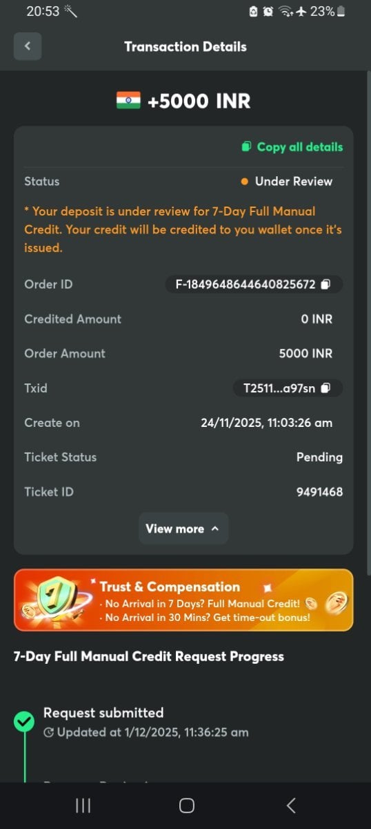 I started this thread on November 24, 2025 for my ₹5000 UPI deposit (UPI Ref: 392756640722, Order ID: F-1849648644640825672, Ticket #9491468).